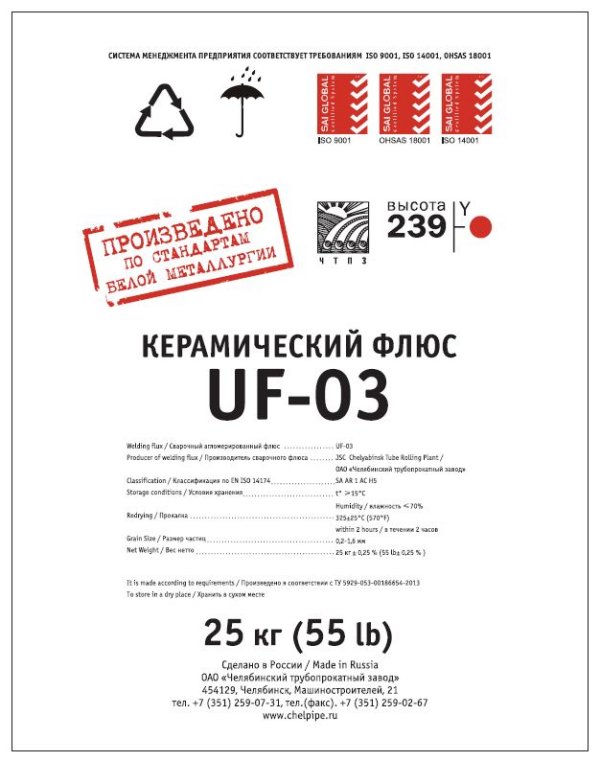 Продукция Челябинского трубопрокатного завода – керамический флюс (порошкообразная смесь, используемая при сварке) новых высокотехнологичных марок – прошла аттестацию Национального агентства контроля сварки (НАКС). В настоящий момент получены подтверждающие свидетельства НАКС на четыре новые марки керамического флюса – UF-N, UF-01, UF-02, UF-03. Данная аттестация – гарант высокого качества продукции и добросовестности производителя, а также соответствие продукта заявленным техническим требованиям.