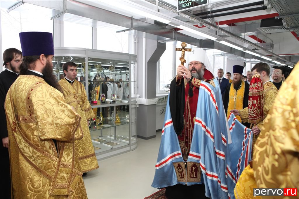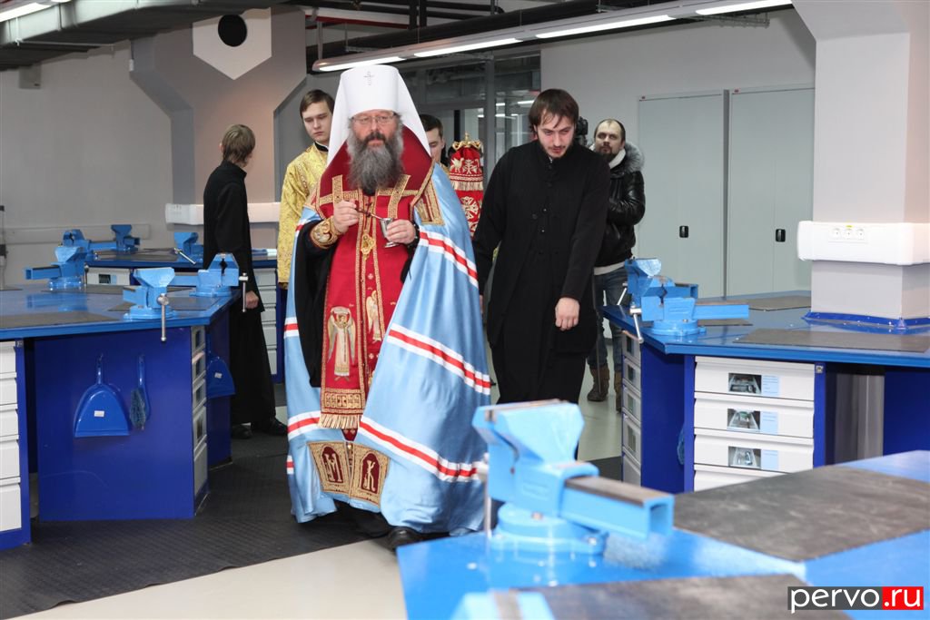 Торжественный молебен и чин освящения совершил Митрополит Екатеринбургский и Верхотурский Кирилл в сослужении клириков первоуральского храма Святых Апостолов Петра и Павла и талицкого храма Смоленской иконы божьей матери. Духовенство Первоуральского благочиния окропили святой водой учебные классы, лаборатории и экспериментальный зал.