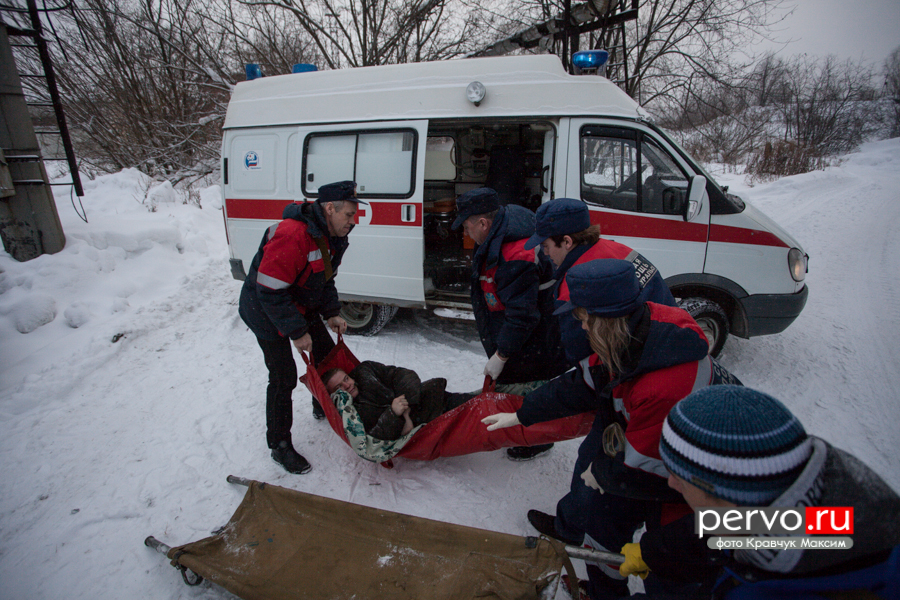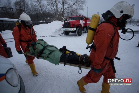 На место аварии прибыли все службы города: спасатели, сотрудники МЧС, скорая медицинская помощь и работники «Водоканала». Первого пострадавшего спасатели выносят спустя несколько минут после утечки хлора.