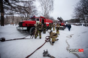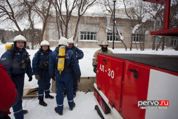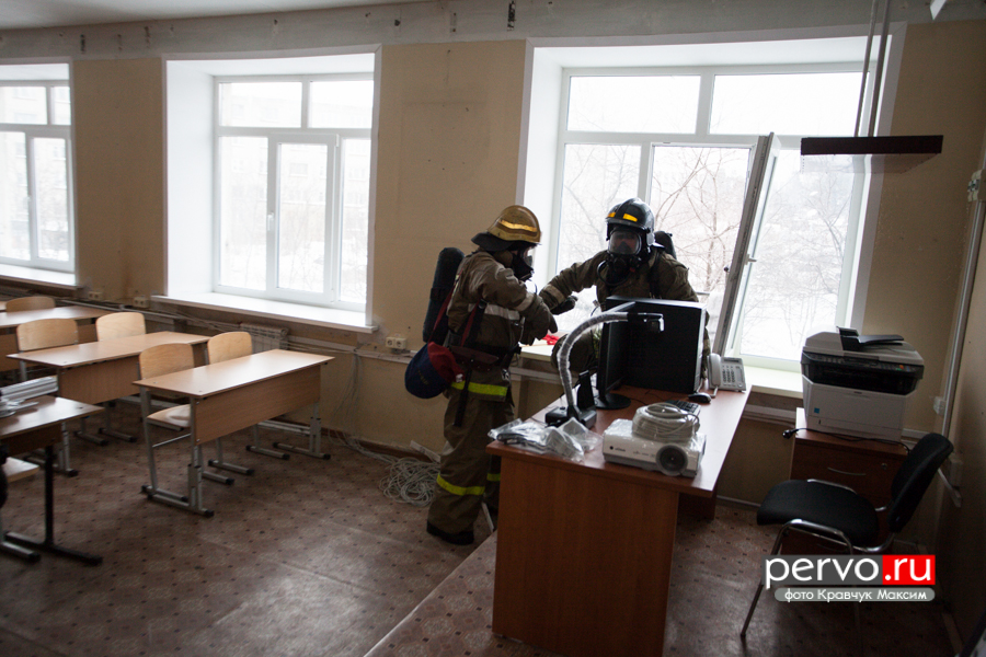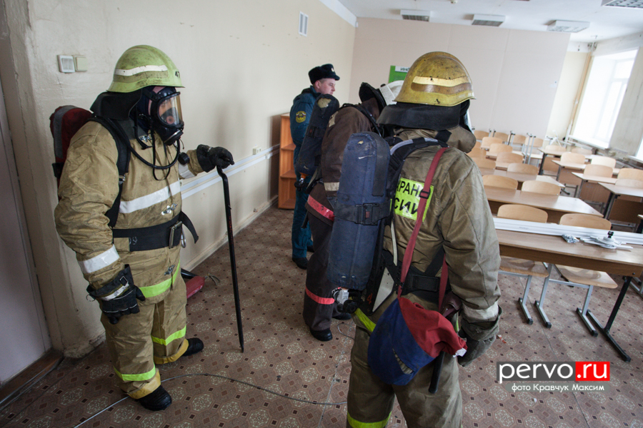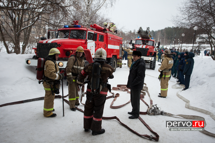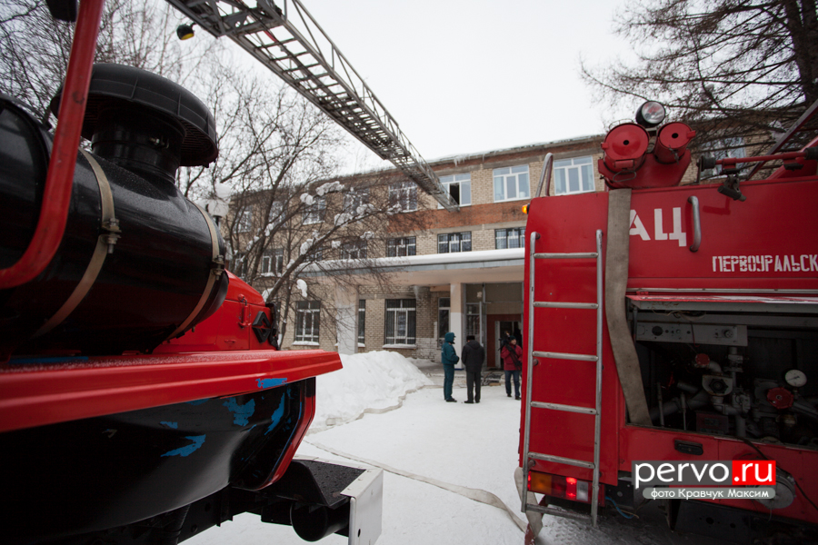 Cегодня в «Первоуральском металлургическом техникуме» были проведены пожарно-тактические учения по ликвидации условного пожара, эвакуации педагогического состава и студентов. Целью учений была проверка готовности людей к экстренной эвакуации, а также тренировка пожарных подразделений в проведении работ по спасению пострадавших и тушению пожаров. Сообщение о возгарании на пульт 112 поступило в 11:45.