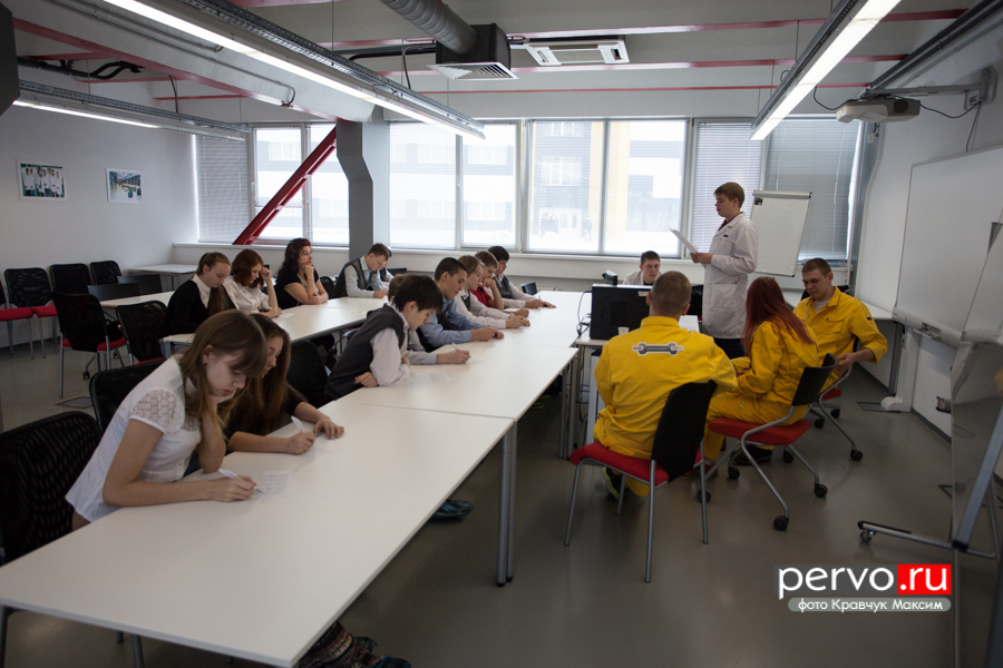 Экскурсоводами для школьников стали студенты Учебного центра ПНТЗ. Сегодня по специальностям программы «Будущее белой металлургии» обучаются юноши и девушки из Ревды, Шали, Новоуральска, Асбеста, Кургана, Ивделя, Верхотурья, Коуровки, Екатеринбурга, Пермского края, Удмуртии и Башкирии. Две трети учебного времени студенты проводят в Учебном центре и на ключевых участках производства, где приобретают практические навыки работы. За каждым из них закреплен наставник из числа опытных производственников. По инициативе акционеров группы ЧТПЗ студенты программы «Будущее белой металлургии» получают дополнительную стипендию от предприятия в размере 3000 и 2000 рублей в зависимости от успеваемости, изучают технический английский язык.