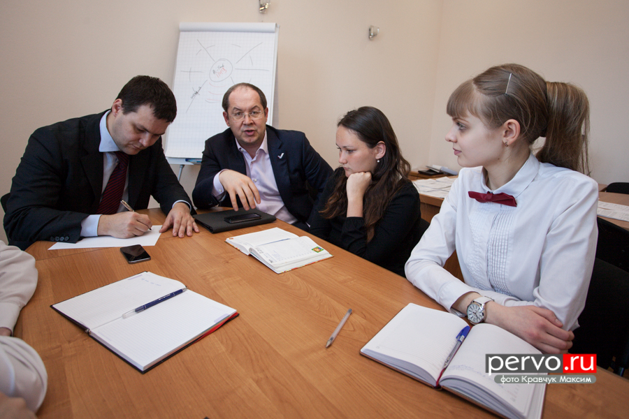 Сразу после совещания состоялся еще один мозговой штурм. На этот раз собрание о завтрашнем дне Первоуральска прошло со школьниками и студентами, победителями деловой игры «Первоуральск – город будущего».