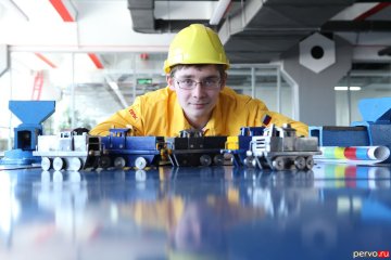 - только что закончились соревнования, было всего две команды, идет предварительный подсчет очков. Робот сортировал фишки, были фишки черная, серебристая и красная. Робот должен был подъехать, определить цвет и в соответствии с цветом отвезти фишку на нужную станцию. Раскладывал за 2,5-3 минуты, время зависит от цвета фишки. С программированием робота мы справились за три часа, нашим соперникам понадобилось три.