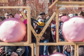 «Горожане с большим интересом отнеслись к соревнованиям. Десятки команд зарегистрировались в качестве участников за несколько недель до мероприятия. Общегородской результат по количеству сбитых хрюшек в Первоуральске составил девяносто четыре»,— отмечают авторы идеи. Больше всего очков набрала команда под названием «Пилот».