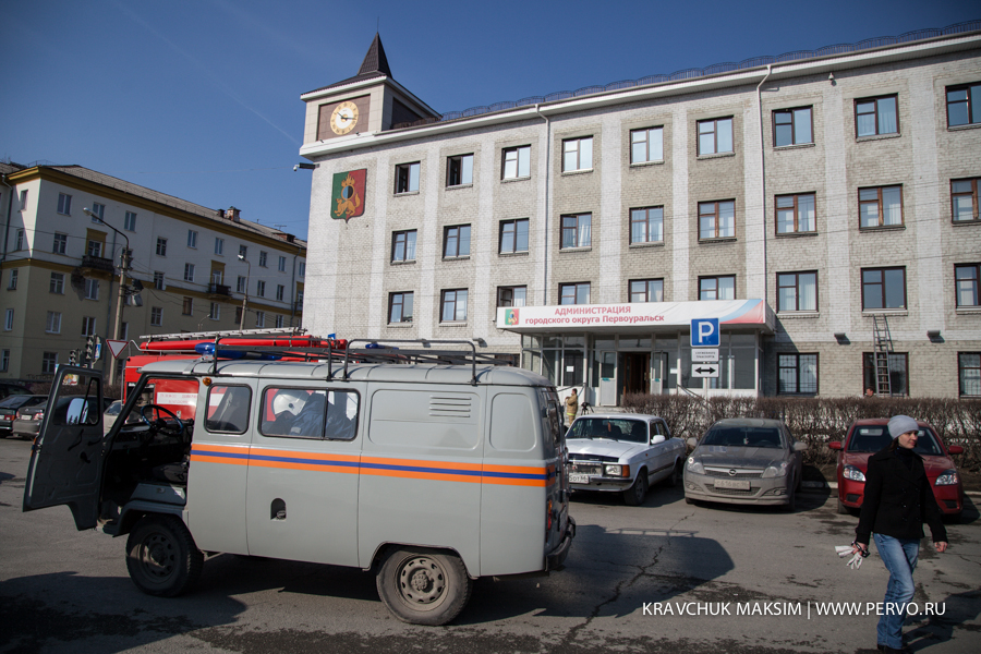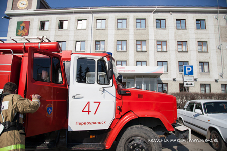 Сегодня здание администрации городского округа Первоуральск стало местом проведения масштабных учений, в которых были задействованы МЧС, пожарные, муниципальная служба спасения, городская станция скорой помощи и ГИБДД.