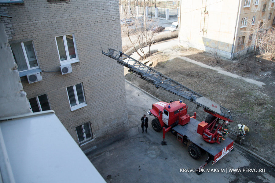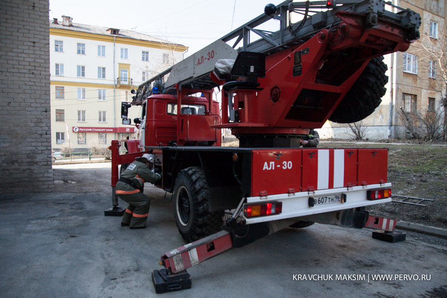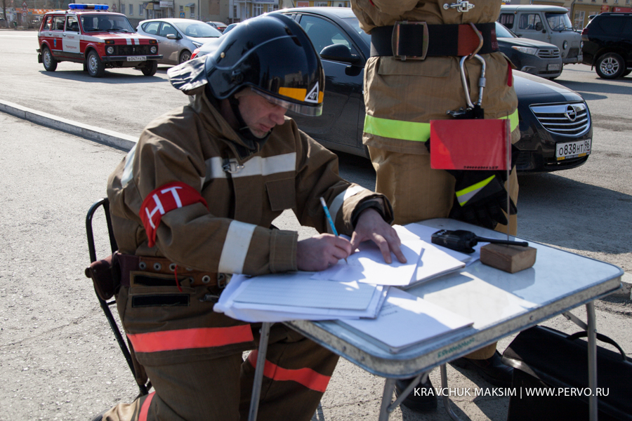 По лестнице начали спускаться встревоженные сотрудники и посетители администрации. По условиям учений никого не извещали заранее о месте и времени их проведения. Сотрудников и посетителей администрации, самостоятельно покинувших здание, спасатели эвакуировали в здание ДК ПНТЗ. Через шесть минут после сигнала тревоги к зданию администрации прибыли пожарные машины, еще через пару минут появились «скорые» и машины ГИБДД. На четвертом этаже здания администрации оказались блокированы огнем сотрудникb администрации. Пожарные эвакуированные по выдвижной пожарной лестнице.