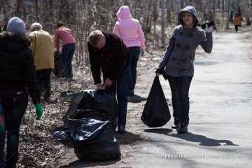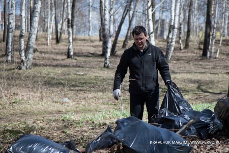 Сегодня сотрудники администрации ГО Первоуральск во главе с Алексеем Дроновым вышли на «субботник». Цель «субботника» - очистить Корабельную рощу от зимней грязи и мусора, в канун великого праздника Дня Победы.