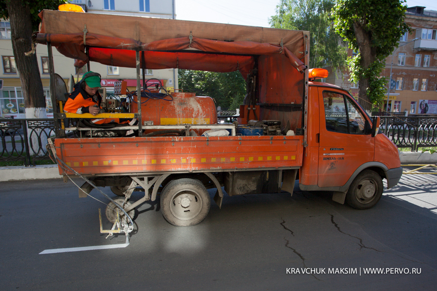 Делать разметку на проезжей части сложно, так как это связано с движением транспорта. Днем рабочие стараются рисовать пешеходные переходы и продольную разметку, ночью – остальные элементы. Перед началом работ подрядчик предупреждает соответствующие службы, так как иногда приходится частично перекрывать движение.