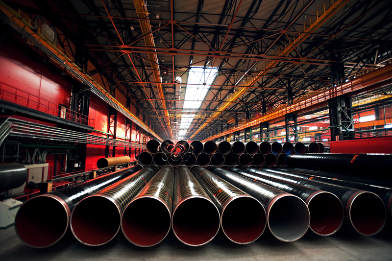 Трубы диаметром 820, 1020, 1220 и 1420 мм, с толщиной стенки 9-17 мм изготовлены из хладостойкой стали класса прочности К 56, вся продукция – с внешним трехслойным антикоррозионным покрытием. Дополнительное условие заказчика – дробеметная обработка внутренней поверхности трубы для полного избавления продукции от окалины, которая может скрывать поверхностные дефекты металла.