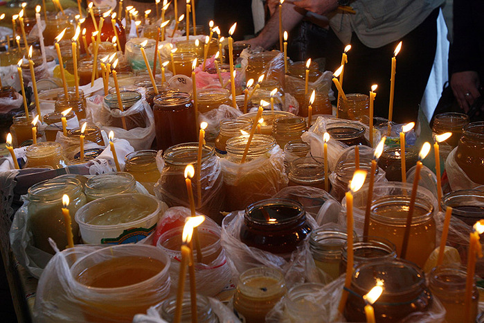 В честь этого праздника служители церкви подготовили несколько десятков литров своего освященного меда. Недаром есть русская поговорка: «На первый спас и нищий медку попробует».