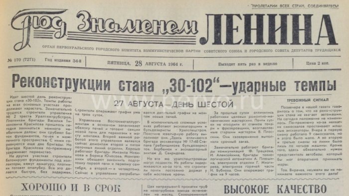 Но, если заглянуть в архив городской библиотеки и полистать пожелтевшие страницы газеты «Под знаменем Ленина», то можно с огромным удивлением обнаружить, что любые события для Первоуральска, да, наверное, и всего мира цикличны.
