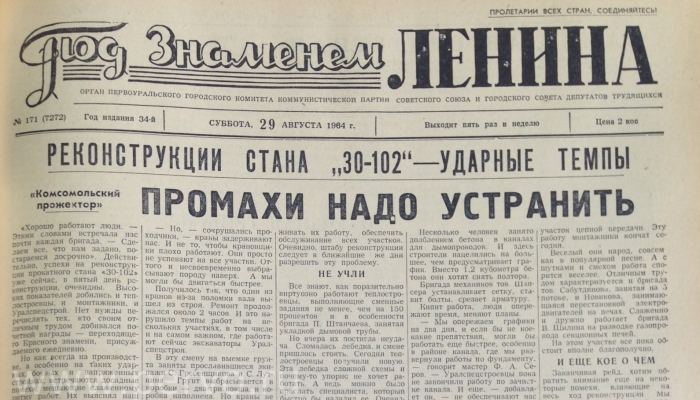 29 августа 1964 год. газета «Под знаменем ЛЕНИНА»