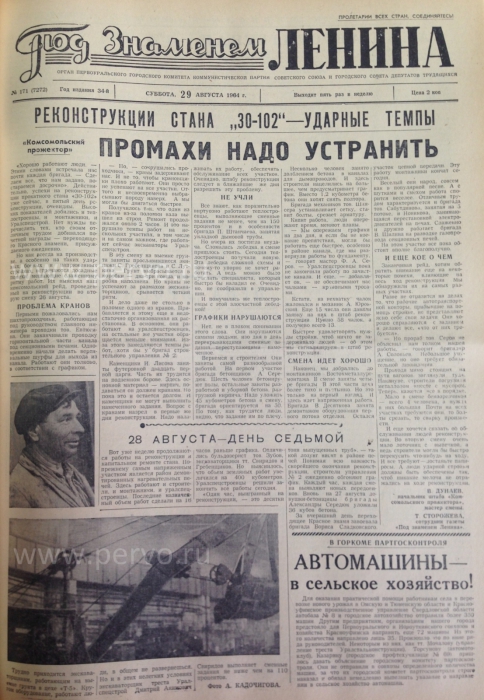 28 августа 1964 год. газета «Под знаменем ЛЕНИНА»