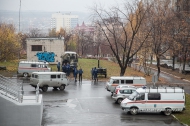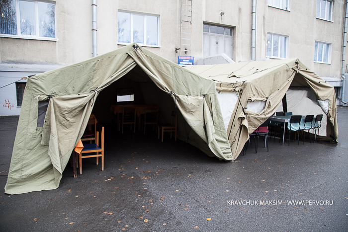 На улице возле ДК ПНТЗ также все готово к приему и дальнейшей эвакуации населения.