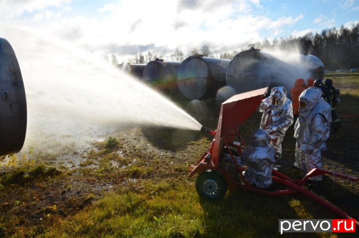 По легенде учений, в результате грозового разряда произошло «возгорание» 18 цистерн с нефтепродуктами общим объёмом 10 000 кубометров. «Взрыв» 2 ёмкостей с горючей жидкостью, вызванный «пожаром», повредил находящийся в непосредственной близости склад химикатов, что привело к «разливу» серной кислоты. В результате «чрезвычайной ситуации» пострадали 25 работников нефтебазы. К месту происшествия незамедлительно прибыли службы экстренного реагирования. Был организован поиск «пострадавших» с привлечением кинологической службы, их спасение и оказание первой медицинской помощи. Проведена герметизация емкостей с «химикатами» и их защита от воздействия теплового излучения от «горящих» цистерн. Одновременно силами пожарно-спасательных формирований организовано охлаждение водой емкостей с топливом, в том числе с применением прицепного бронещита с лафетным стволом. Проведённая с привлечением автолестницы пенная атака окончательно ликвидировала «горение».