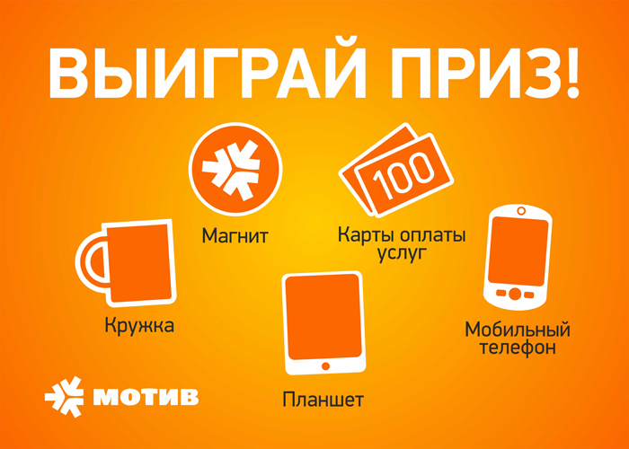 С 10 октября по 15 ноября действующие и новые абоненты оператора МОТИВ смогут выиграть один из 300 подарков, среди которых планшет, мобильные телефоны, деньги на баланс и фирменные сувениры.