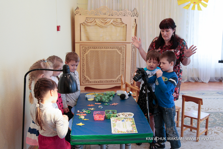Мультфильмы дети и педагог снимают сами. Сначала придумывают тему и героев. После нужно изготовить главных действующих лиц – сделать кукол, вылепить их из пластилина. Не стоит забывать и о декорациях. Их малыши тоже делают сами. Когда все готово, начинается съемка. Расставив всех по местам, по команде «режиссера», кстати, камерой юные мультипликаторы тоже управляют сами, ребята убирают руки. Кадр готов. Движение следующее, и так до последнего действия героев. После воспитатель монтирует снятый материал. Да, Татьяне Жековой пришлось освоить специальные компьютерные программы для создания полноценных фильмов. Но, отмечает педагог, результат того стоил.