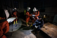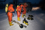 У каждого - свои обязанности. Кто-то патрулирует территорию, кто-то берет анализ воздуха для определения степени загрязнения. Спасатели накладывают хомут на емкость с опасным веществом. Действия нужно выполнить максимально качественно и быстро. Спасатели работают с пострадавшим, оказывают первую медецинскую помощь, до прибытия кареты скоро помощи.