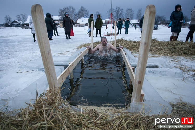В Билимбае к поддержанию народных традиций относятся весьма серьезно. На льду пруда прорублена прорубь в виде креста. Александр Гильденмайстер, начальник Билимбаевского сельского территориального управления, организовал все необходимые условия для людей, пришедших искупаться в проруби.