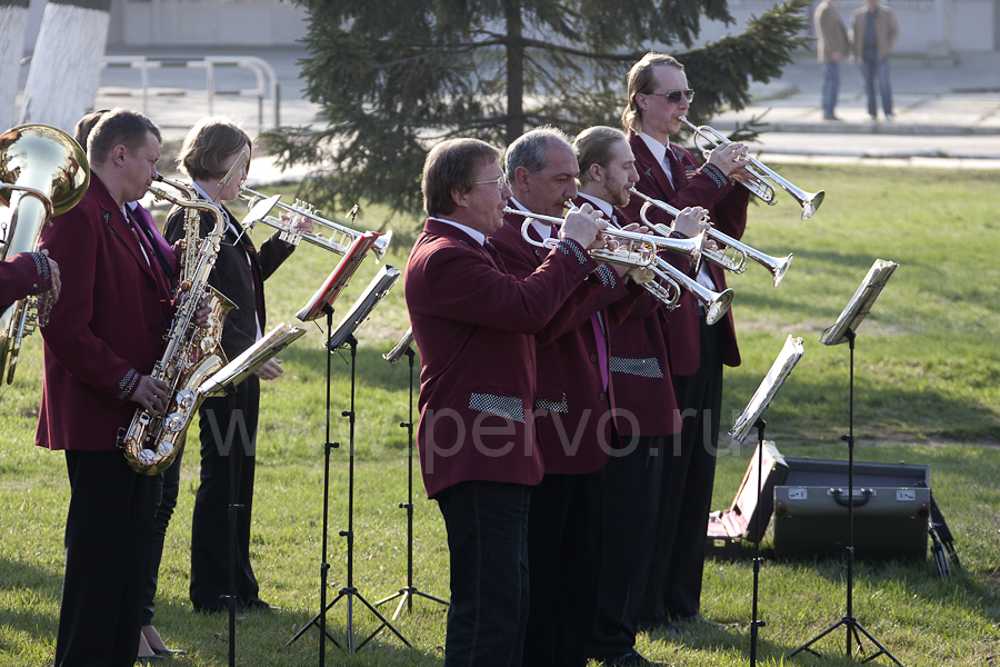 Ветераны войны начали собираться в 8:30 у вечного огня у заводоуправления ПНТЗ. Поздравили ветеранов словами благодарности за их подвиги, читали им стихи и выступали коллективы города. Работала полевая кухня.