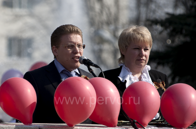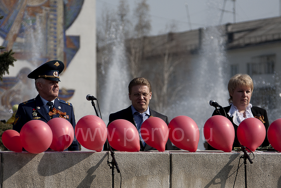 В 10: 30 все празднования продолжились на главной площади, где глава города Первоуральска Переверзев Юрий Олегович поздравил ветеранов войны и жителей города с праздником.