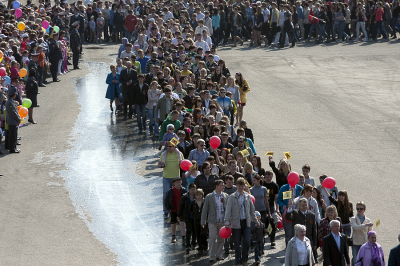 Мероприятия закончились парадным шествием, и перенеслись к ДК ПНТЗ, где прошёл спортивный праздник «ChTPZ Streetball Challenge».