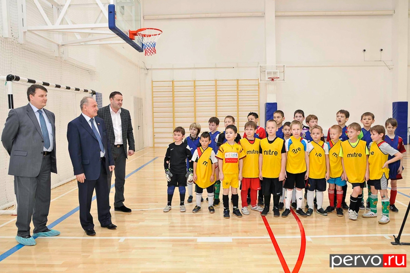 Почетные гости приехали не с пустыми руками: от городской администрации юные футболисты, чьи занятия уже проходят в современном спортивном зале, получили в подарок профессиональные мячи.