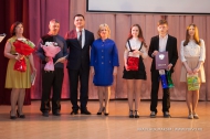 Первыми на сцену поднялись лауреаты премии по поддержке талантливой молодежи, установленной Указом Президента РФ - Людмила Шиян, ученица лицея № 21, Никита Сёмин - воспитанник Центра детского творчества и Елизавета Филипенко - выпускница Первоуральского металлургического колледжа.