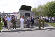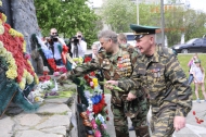 Автоколонна с развевающимися флагами пограничной службы России, во главе которой – боевая машина, проехав по центру города, остановилась у аллеи славы. Здесь у памятного знака – пограничного столба колонну встречали сотни зеленых фуражек и беретов.