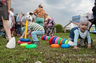 Здесь же на ребячьи лица наносили аквагрим. На площадке рядом сотрудники Народного дома знакомили ребят с играми и развлечениями бабушек и дедушек. Особое внимание маленьких горожан привлекли «Веселые старты». Пройтись на ходулях, преодолеть дистанцию, прыгая в мешках, проявить меткость, стреляя из водяного пистолета, оказаться самым ловким, прыгая через гигантскую скакалку – от желающих принять участие в соревнованиях не было отбоя.