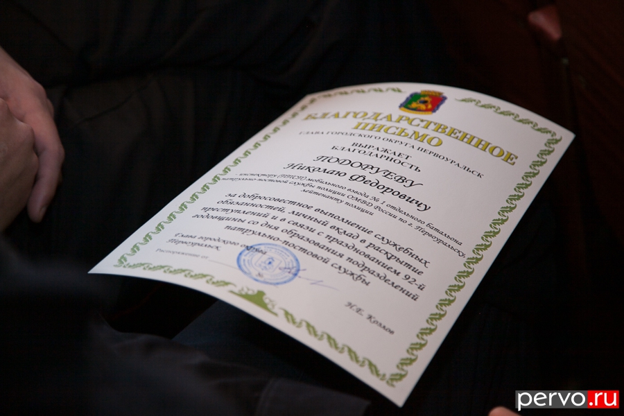 Вчера, в 15:00 в здании ОМВД Первоуральска состоялось торжественное мероприятие, которое открыл поздравительной речью полковник полиции Олег Грехов. На праздновании Дня службы также присутствовали глава администрации Алексей Дронов, глава городского округа Первоуральск Николай Козлов, заместитель управляющего Западного управленческого округа Марк Веберов, вдовы и родственники погибших при исполнении служебных обязанностей полицейских, а также ветераны службы.