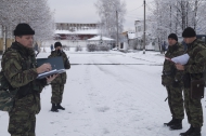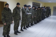 Майором внутренней службы Сергеем Сухоруковым и начальником отедла специального назначения полковником внутренней службы Игорем Жураховским был проведен строевой смотр личного состава, опрошены обязанности по действиям в группах боевого порядка согласно поданной вводной.