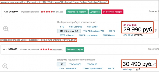 Обратите внимание на комплекты «приставка+игры» — у некоторых продавцов стоимость отдельно консоли оказалась дороже, чем при ее покупке с играми.