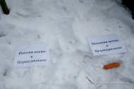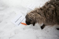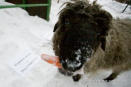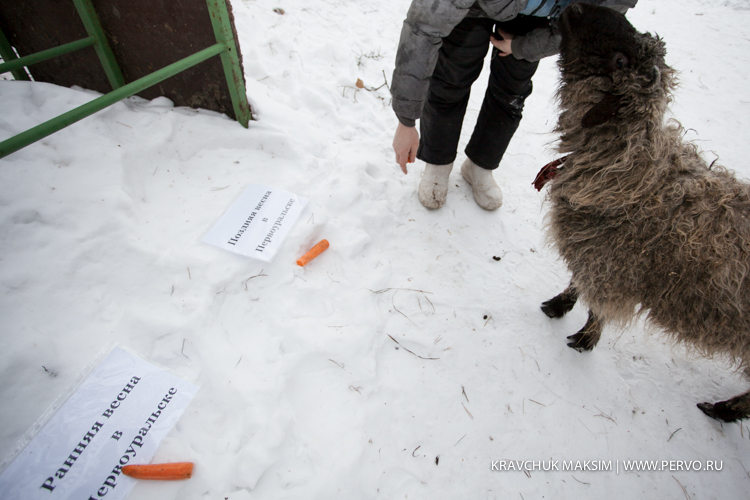 На снегу мы положили два листа формата А4, где было написано: ЗИМА и ВЕСНА, и две вкусные морковки. Из вольера работники зоопарка выпустили одну верблюдицу для предсказаний, но получилось так, что на помощь вышла и вторая верблюдица Гуля и два лохматых козлика. Вместе они принялись выбирать, что нас ждет впереди. После долгих дебатов, верблюдица Ляля решила оставить подольше зиму в Первоуральске.