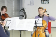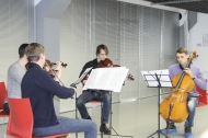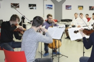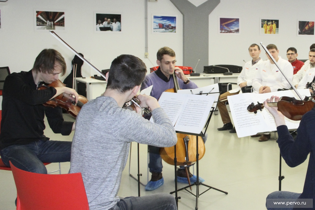 Вчера в стенах Образовательного центра ПНТЗ прозвучали произведения великих композиторов. Гостями стали музыканты популярного коллектива IP Orchestra под руководством Игоря Пономаренко. По крупным городам Урала оркестр гастролирует с рок-хитами, но для первоуральских студентов особая программа – струнный квартет Бетховена.