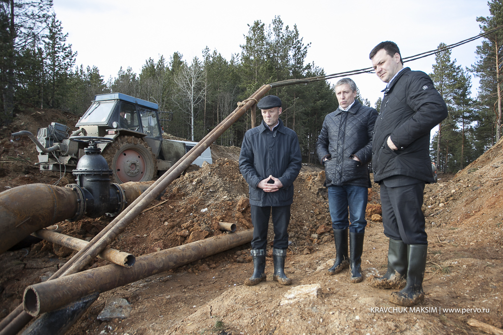 Вместе с главой администрации насос и трубу, по которой идет откачка воды, осмотрели директор ПМУП «Водоканал» Валерий Хорев и руководитель Билимбаевского СТУ Александр Гильденмайстер.
