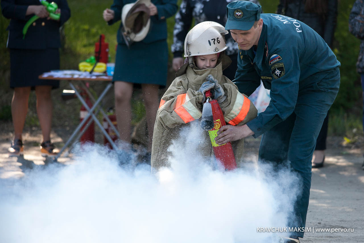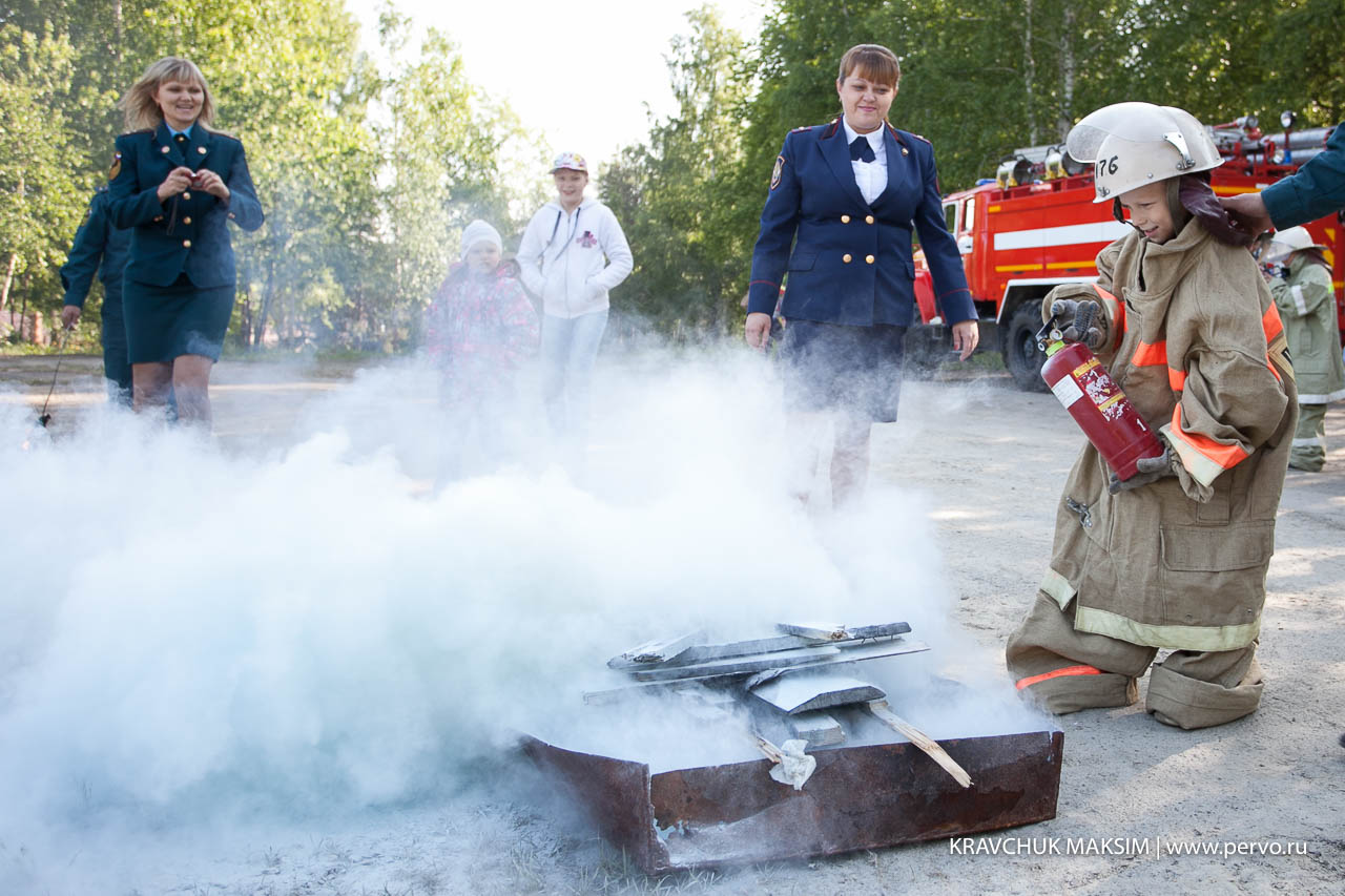Третья площадка была подготовлена 47-й пожарной частью, где юные первоуральцы, переодевшись в настоящее снаряжение пожарных, тушили условное возгорание из пенного огнетушителя.
