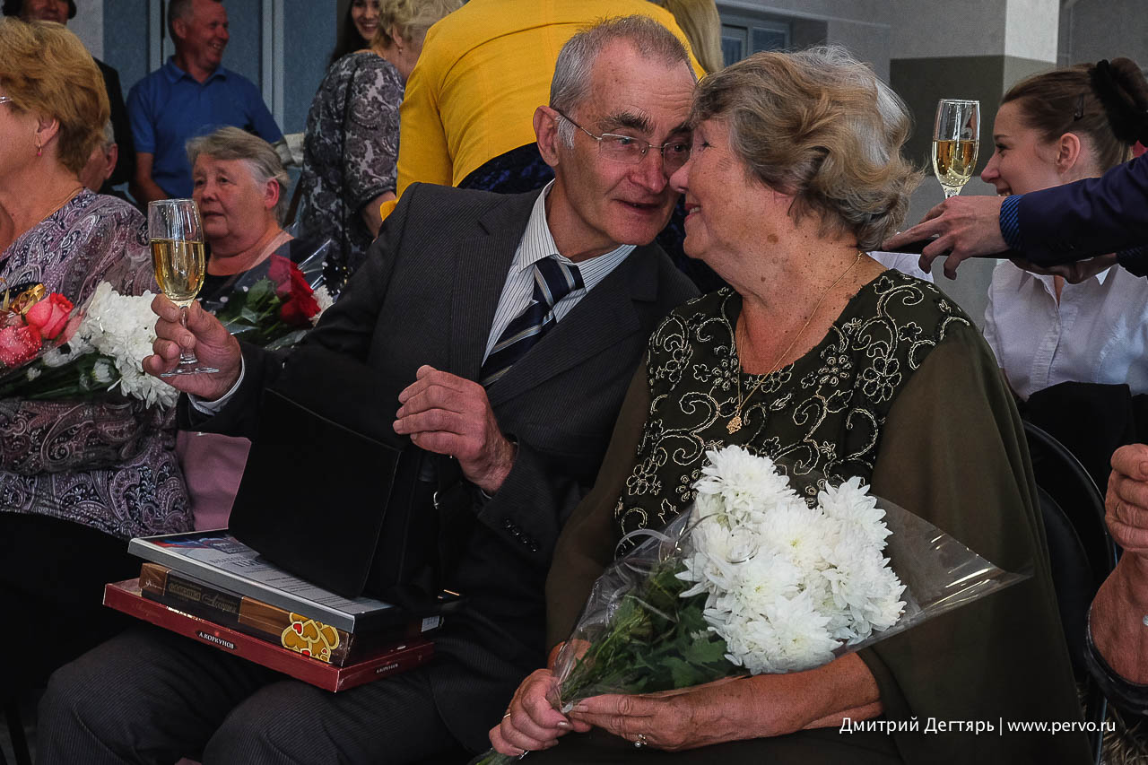 На торжественную церемонию вместе с супругами пришли и их родные. В окружении детей, внуков, а кто-то уже и правнуков, пары делились воспоминаниями о дне знакомства, о мгновении, когда поняли: вот она – судьба, о дне свадьбы, и конечно давали советы: любить и прощать друг друга - в этом залог счастливой семейной жизни.