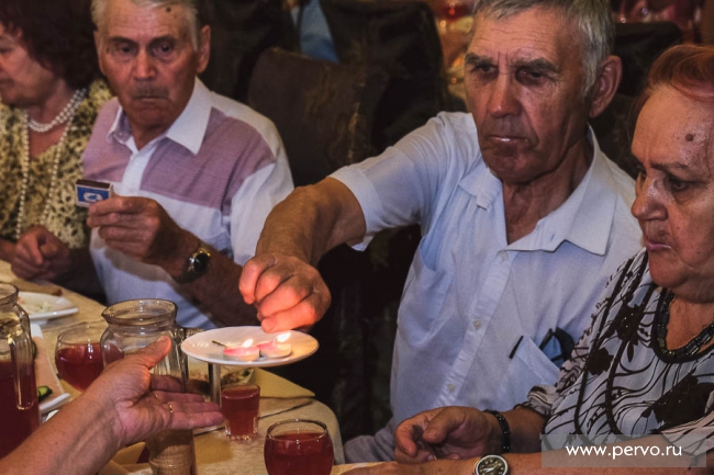 Несколько десятков людей собрались за накрытыми столами, чтобы вспомнить военные годы, своих погибших родных.
