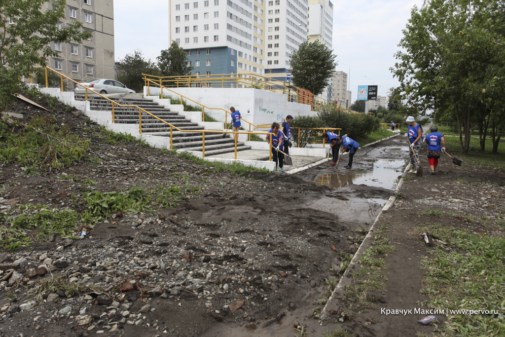 На городскую набережную практически со всей центральной части города стекала дождевая вода, которая принесла с собой пыль, грязь, мелкие камни и ветки деревьев. Именно поэтому было принято решение – выйти на субботник и навести порядок на набережной.
