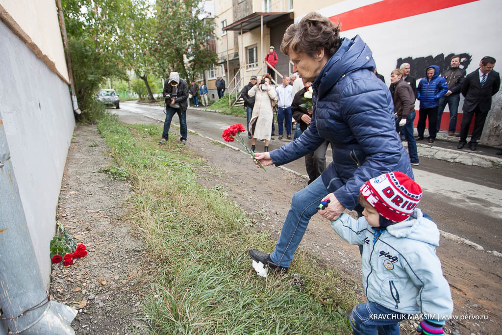 Цветы на газон у мемориальной доски возложили друзья, коллеги, руководство ХК «Уральский трубник». В этот же день, через несколько часов после открытия, к дому №30 по улице Трубников, приехала, закончив тренировку, и возложила цветы команда мастеров в полном составе.
