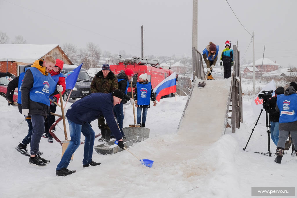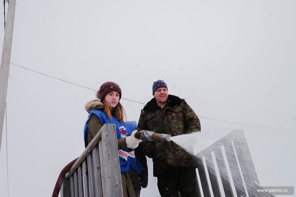 - Формируем скользящую часть. Для того чтобы она получилась ровной и гладкой, проливаем горку из гидранта пожарной машины. Опыт строительства горок у нас уже есть. Только за этот зимний сезон активисты «Единой России» и «Молодой гвардии» построили несколько горок, каждую неделю проходят праздники для детворы. Откликаемся на такие просьбы с радостью, ведь у каждого ребенка должна быть возможность отдохнуть в выходные и зимние каникулы, особенно у жителей отдаленных районов, которые не всегда могут добраться до городского ледового городка, - говорит депутат фракции партии «Единая Россия» в Первоуральской городской Думе Станислав Ведерников.