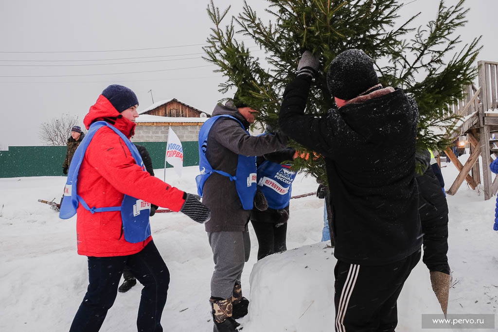 «Молодогвардейцы» работали дружно и с душой. Буквально за час сформировали скользящую часть, разровняли склон после проливки, а после помогли местным жителям установить и украсить зеленый символ праздника – красавицу елочку: