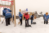 Но перед праздником партийцам пришлось потрудиться: активисты, и это стало уже традицией, очистили территорию площадки. Снега на территории комплекса было по колено, потому детей в последние месяцы на площадке почти не было. В течение нескольких часов на участке работала техника и активисты – порядка 50 кубометров снега было убрано с детской территории.