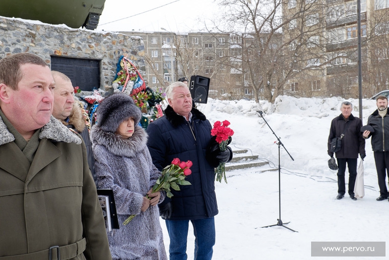 В Первоуральске в день памяти ветераны по традиции собрались у мемориала на улице Ватутина. К подножию БМП возложили цветы и венки в память о погибших участники боевых действий, родные ушедших, представители общественных организаций ветеранов, депутаты Первоуральской городской Думы: