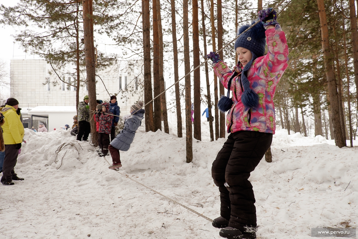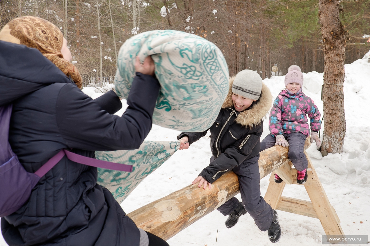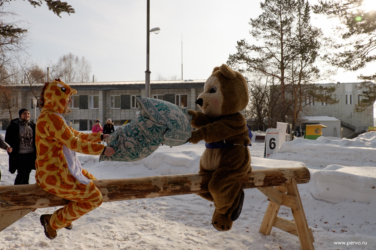 Развлечения на этом не заканчивались. И дети, и взрослые могли побороться за звание царя горы, покататься на лошадях, снегоходах, в собачьих упряжках, вступить в бой подушками на бревне. Работающие детские площадки, где малыши могли провести научные опыты, нанести аквагрим и просто отдохнуть, например, рисуя или раскрашивая, позволили взрослым сходить в походную баню и окунуться в прорубь.