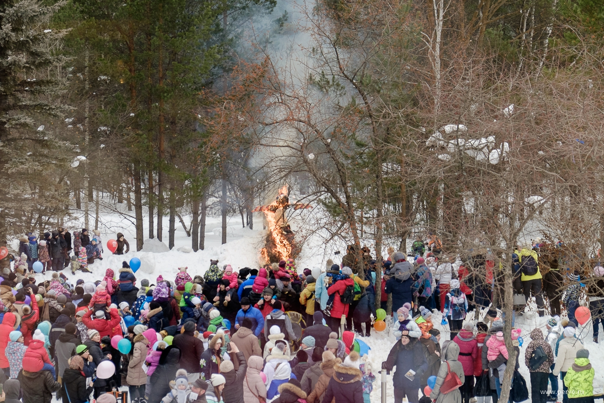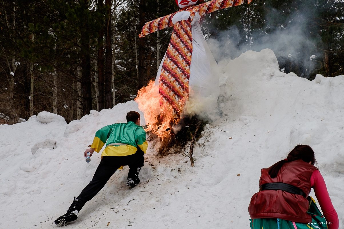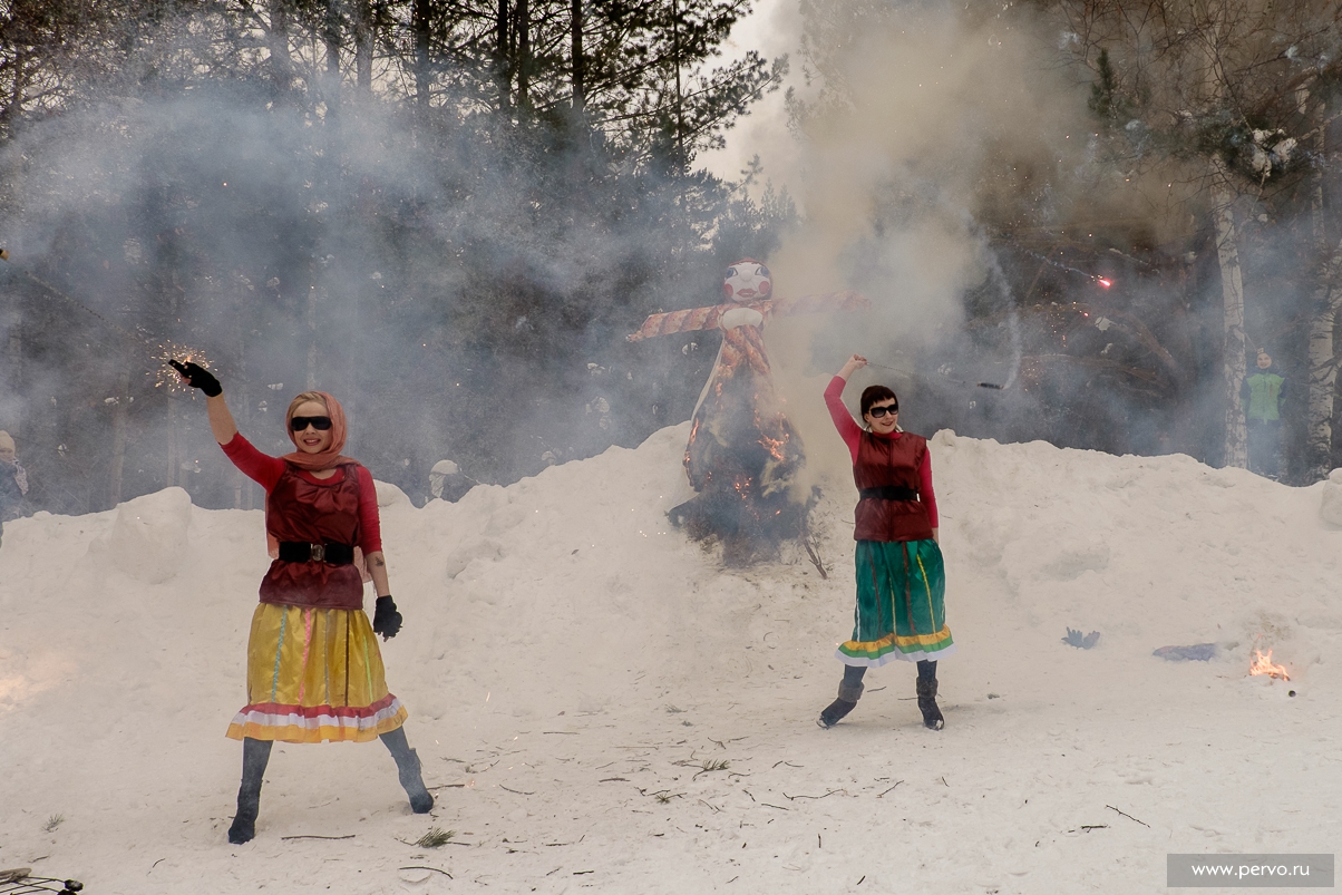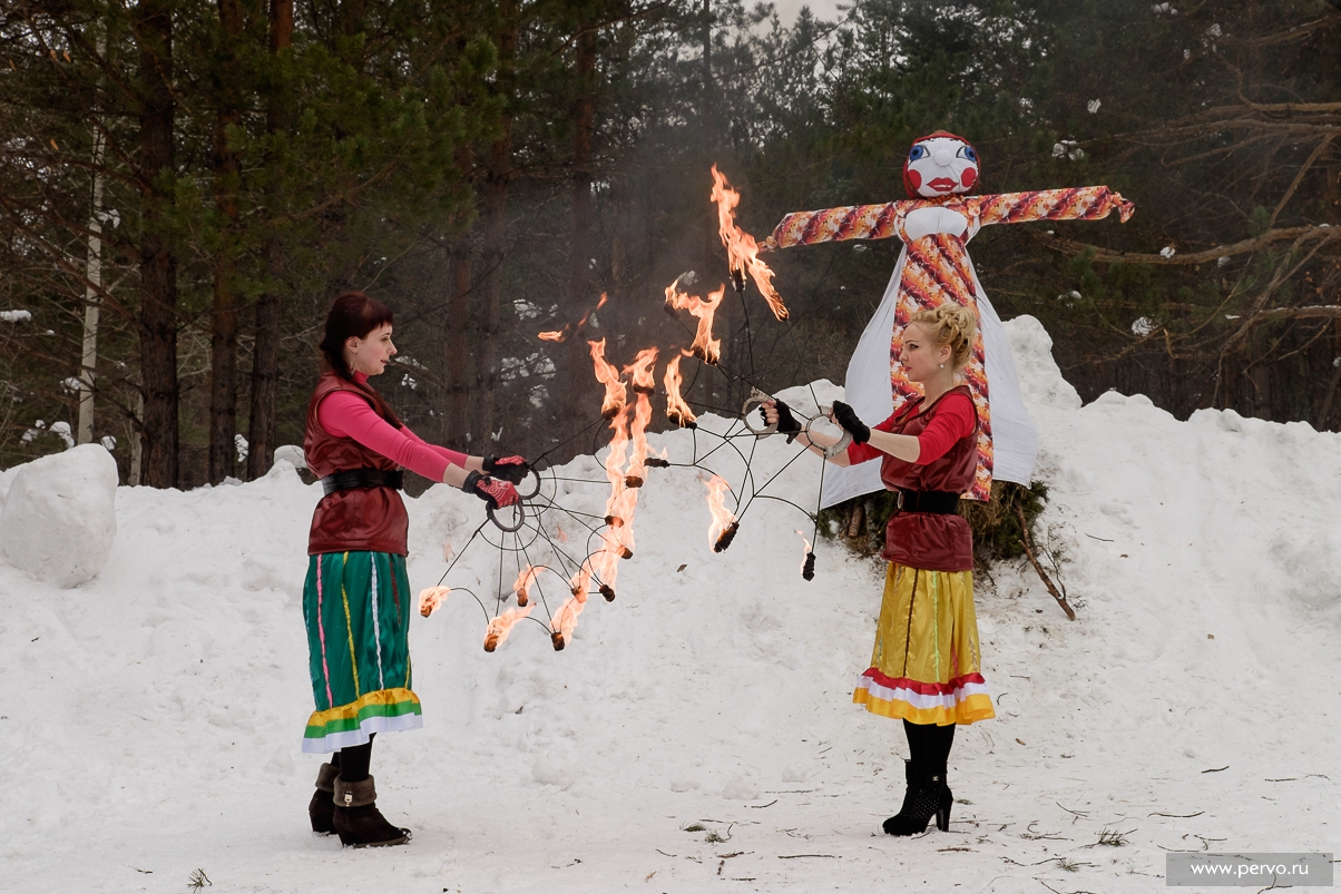 Праздник завершился зрелищным фаер-шоу и сжиганием чучела Масленицы.