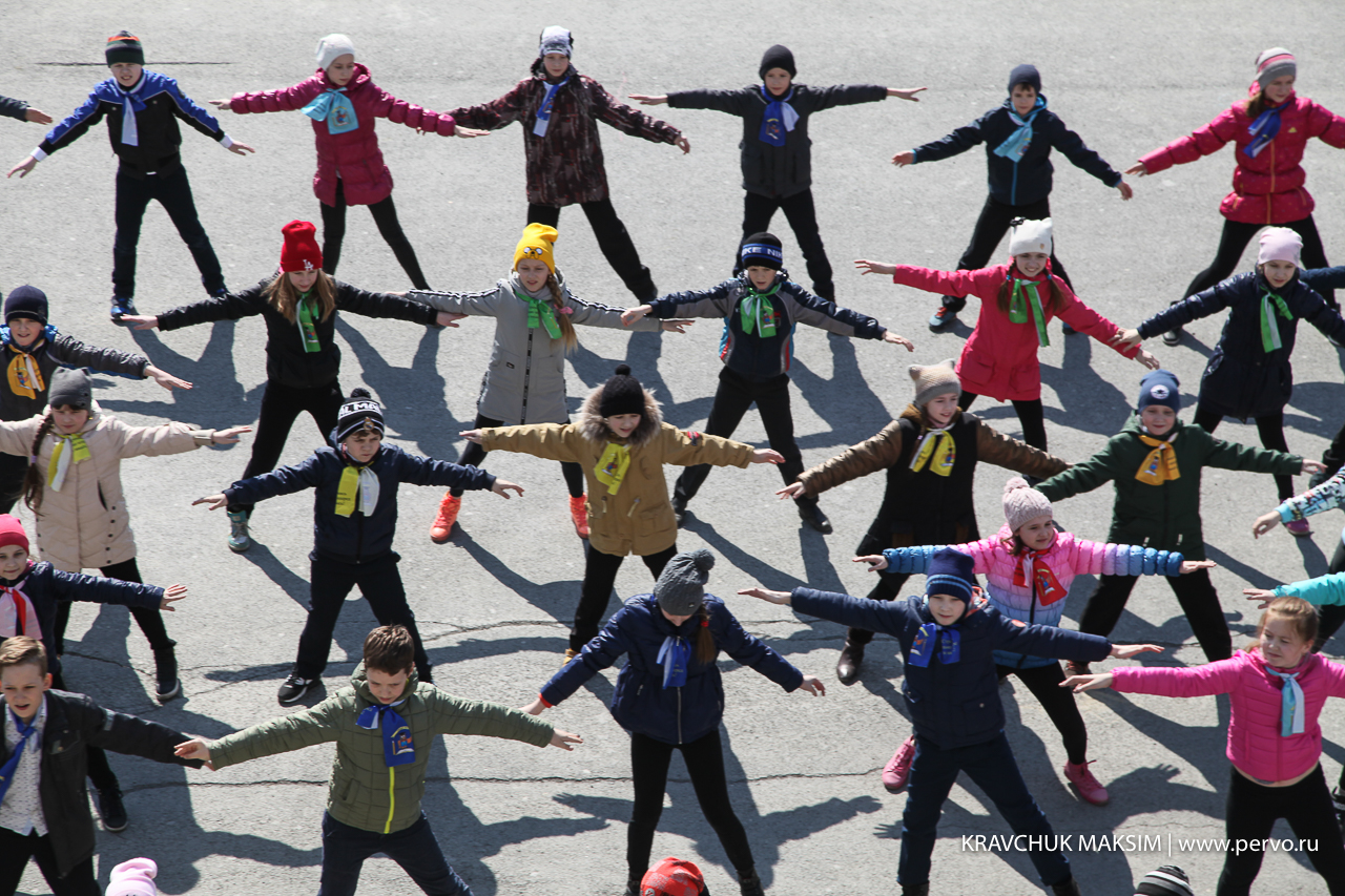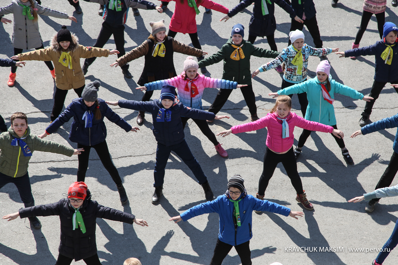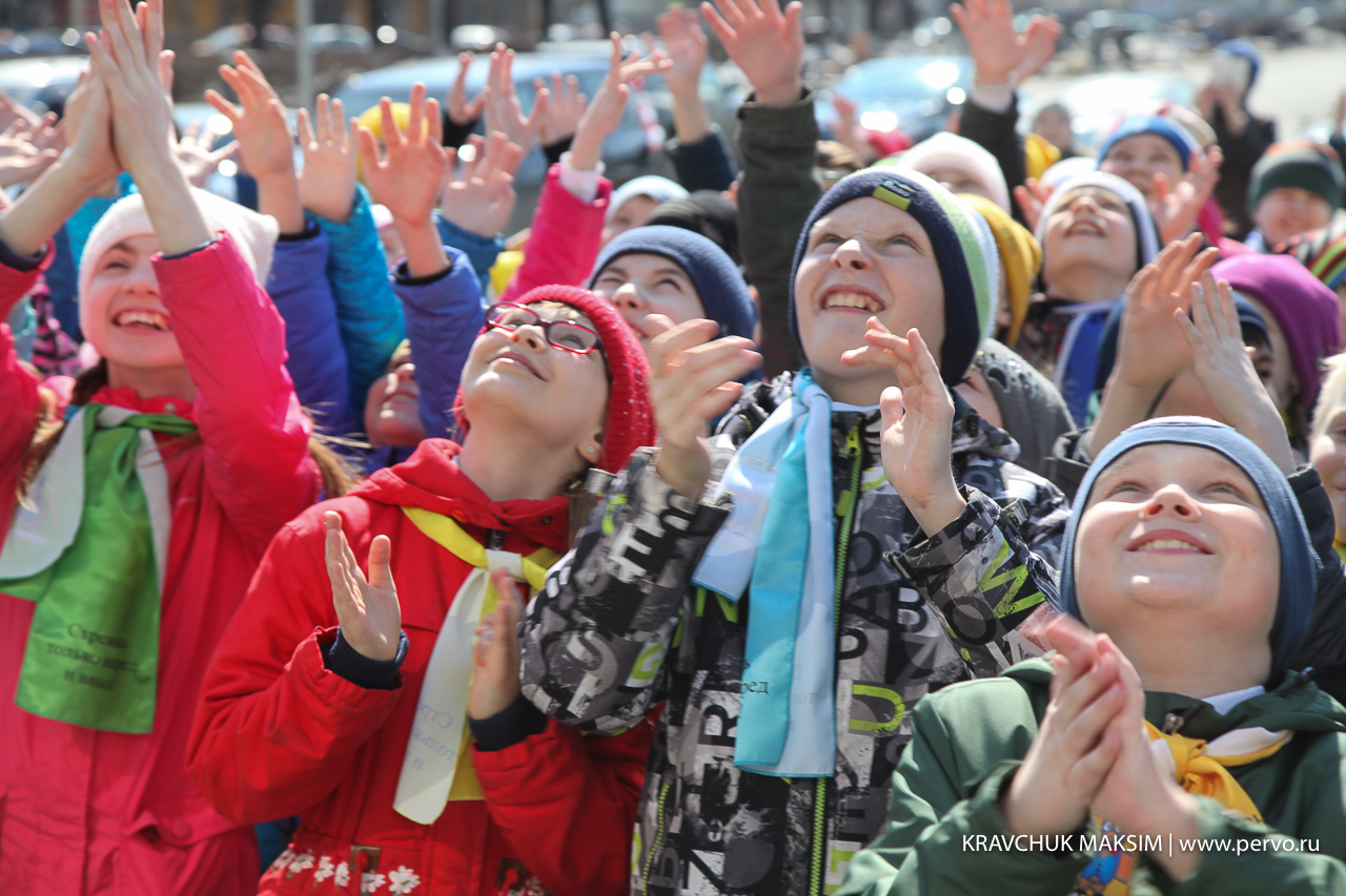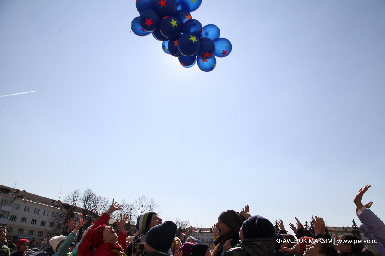 В этот день на центральной площади Первоуральска перед ДК ПНТЗ прошел танцевальный флеэшмоб, посвященный Дню Космонавтики. Под музыку «Время вперед!» 90 школьников запустили в небо ракету, сделанную своими руками. И, хотя выступление длилось всего 15 минут, ребята серьезно готовились к нему в течение нескольких недель.