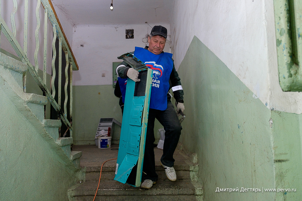 - Подъезд даже преображается, нет уже старых проржавевших конструкций, - ход работ лично контролирует Николай Григорьевич.