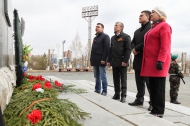 Церемония у памятника началась с минуты молчания. Затем исполняющий обязанности главы администрации Валерий Хорев, заместитель главы по муниципальному управлению Дмитрий Крючков, заместитель главы администрации по ЖКХ Артур Гузаиров и начальник управления образования Елена Исупова возложили к мемориалу цветы.